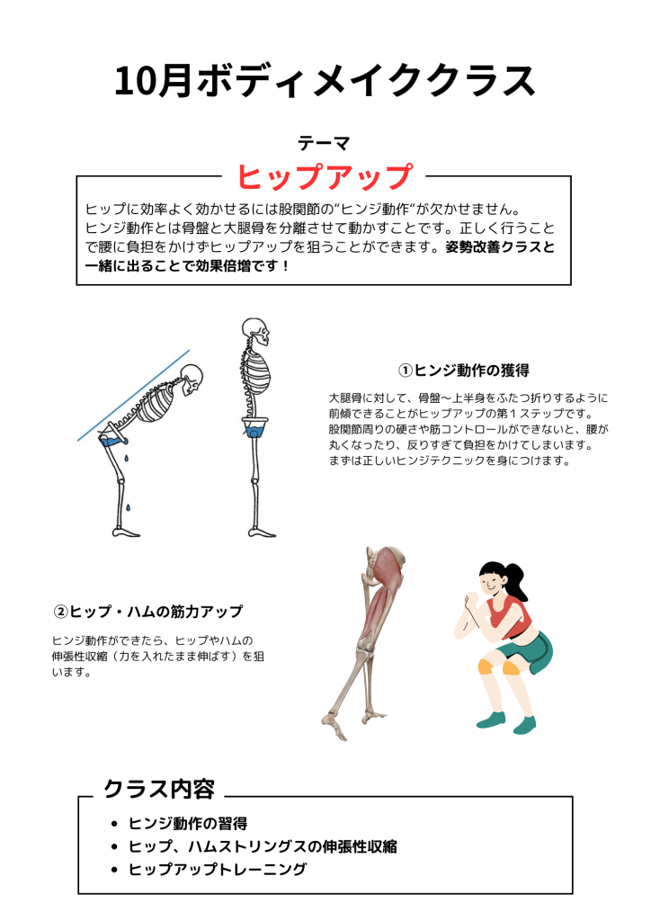 そこで、今回のボディメイククラスではヒップヒンジを徹底的に覚えます💪