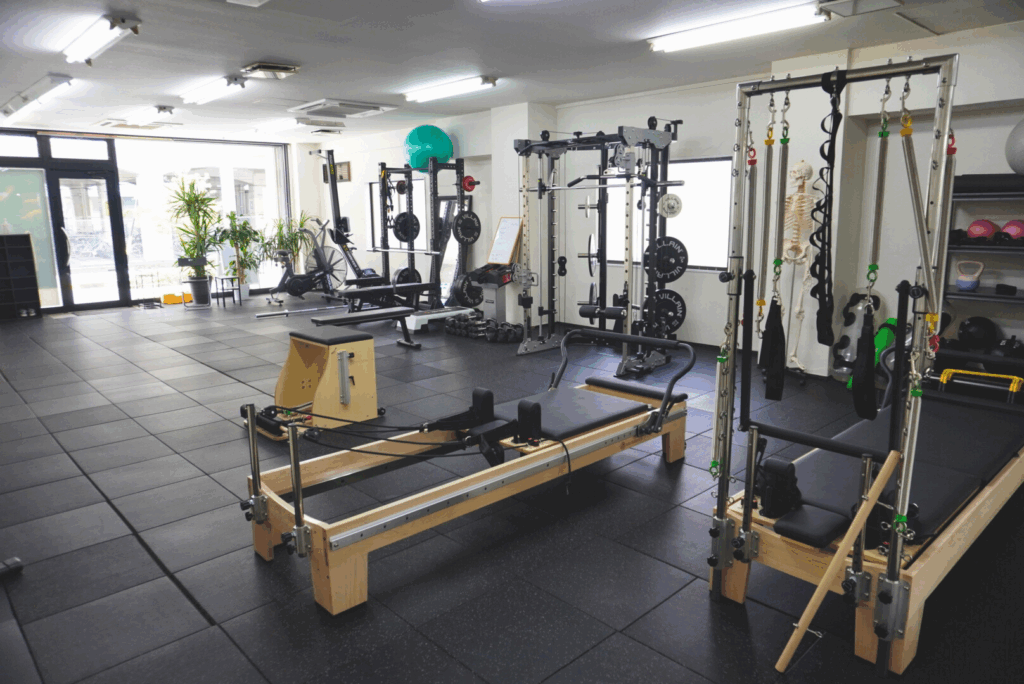 ピラティスマシン・ジムトレーニング器具を設置しております。